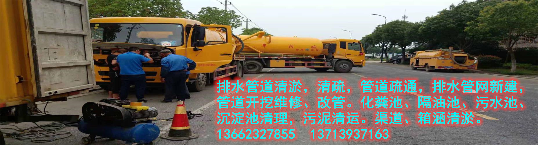 專業服務于排水排污管道清淤疏通、市政管道清淤、河道、魚塘、箱涵清淤/化糞池、隔油池、沉淀池、污水池清理。外墻清洗,管道開挖或非開挖修復,泥漿清運